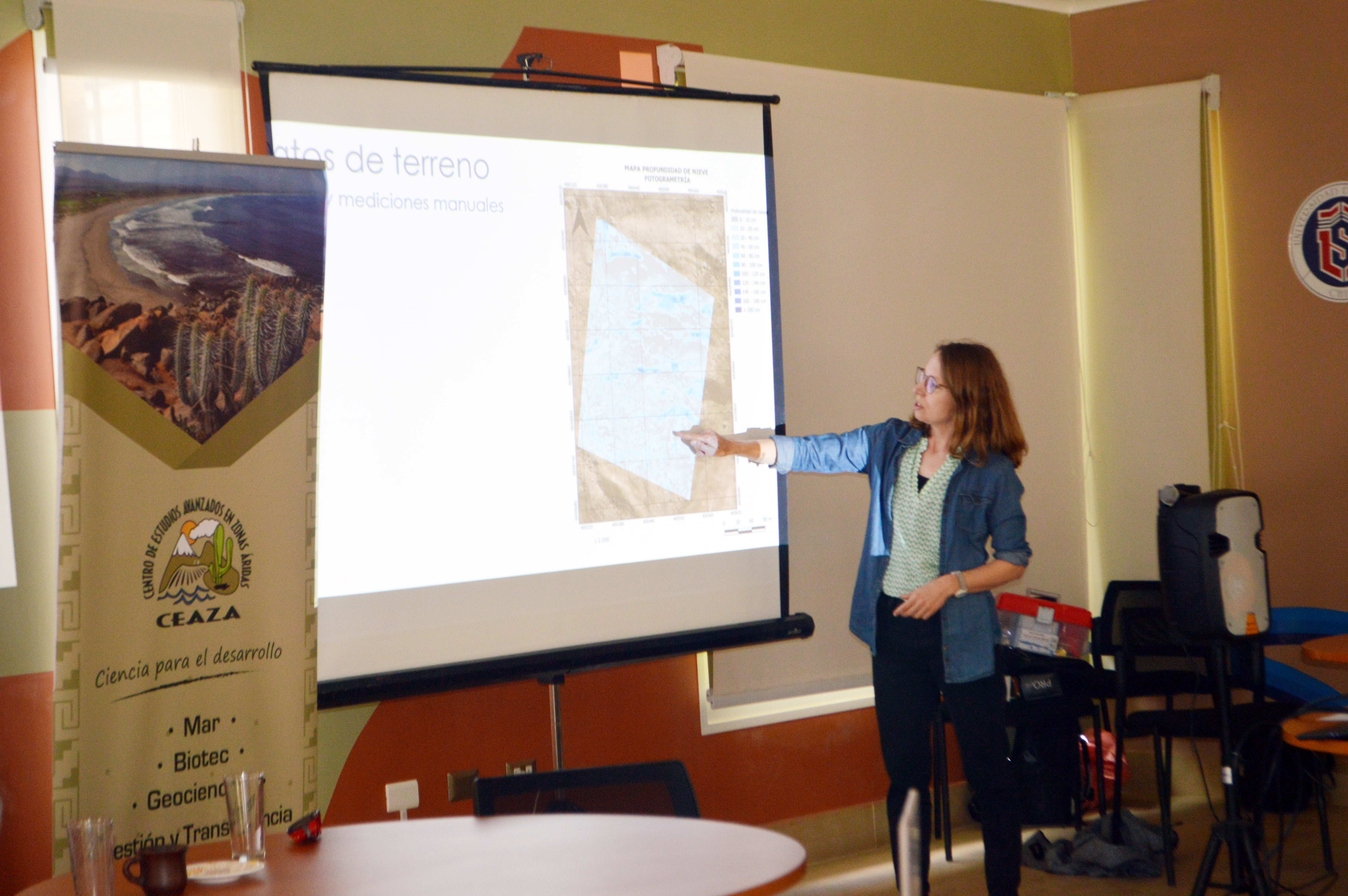 Entre las exposiciones estuvieron el ingeniero eléctrico de CEAZAMet, Adrián Gallardo realizó su presentación titulada “Desarrollo de tecnologías para la telemetría nival” y la Dra. Simone Schawecker, investigadora de Glaciología de CEAZA, con “Proyecto Sweet Coquimbo: Estimando la nieve acumulada en nuestra región”, además de otros resultados de análisis que se dieron a conocer.
